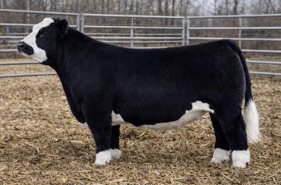 Powerful, balanced, and built for the backdrop, this bull combines stout bone, big foot, and structural integrity with an eye-catching look. Long bodied, smooth shouldered, and bold ribbed, he offers added dimension without sacrificing flexibility or movement. His dense hair and natural muscle shape make him ideal for producing competitive show calves. Versatile across cow types, he consistently adds body, substance, and presence. The kind that generates calves with real-world function and banner-winning potential. With his eye appealing looks, extra width, extra length and depth of body, we think he can be a cow changer.